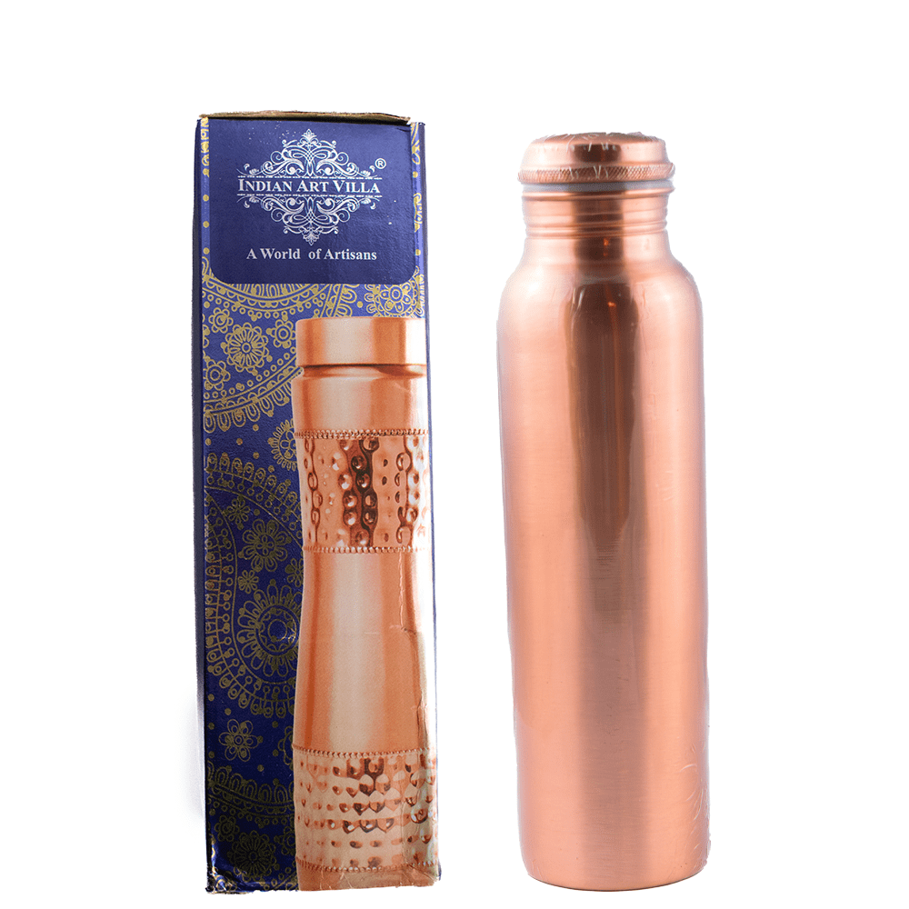 Indian Art Villa Copper Bottle is handcrafted from 99.7% pure copper, featuring a sleek, lacquer-coated finish. Traditionally used to store water overnight, it is believed to offer health benefits such as improved digestion and enhanced immunity. Ideal for daily hydration and a stylish, eco-friendly alternative to plastic bottles.